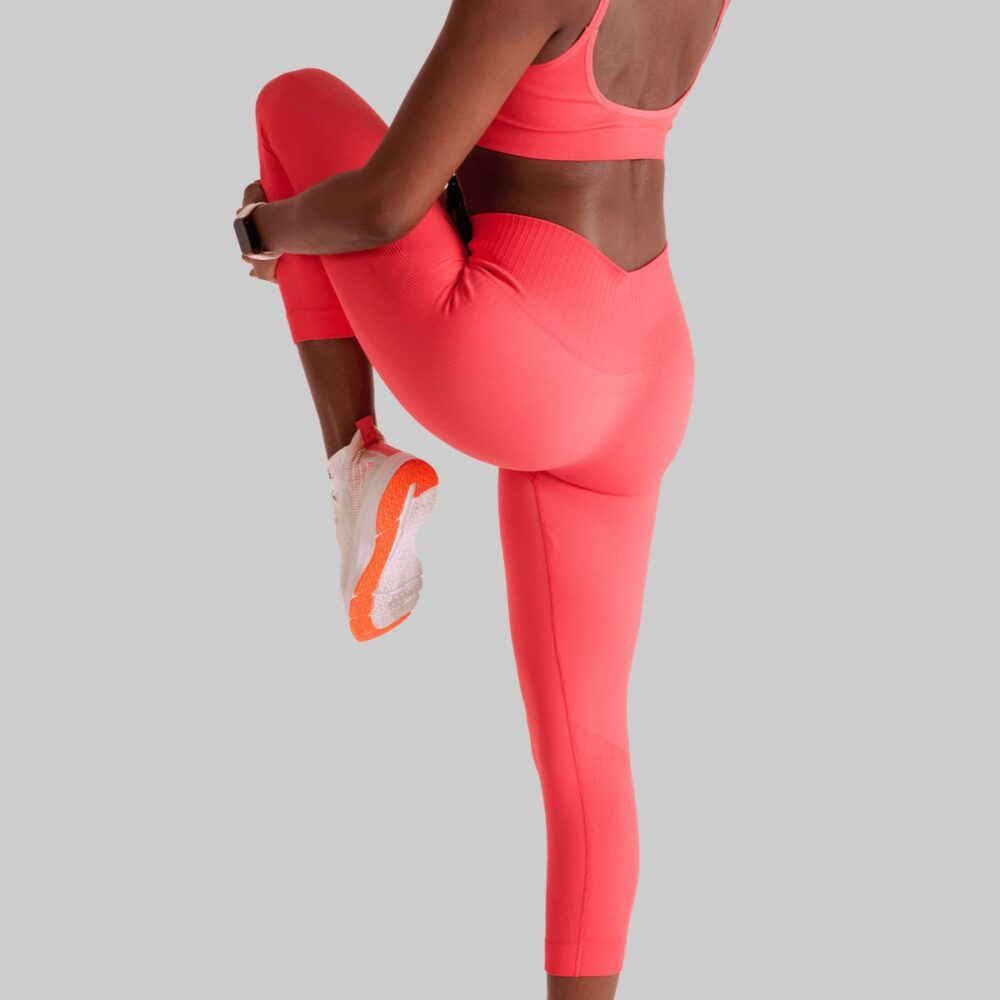 Seu cós anatômico acompanha a curvatura da cintura, modela a silhueta e oferece fixação extra com borda de silicone integrada, evitando que a peça deslize durante os exercícios.